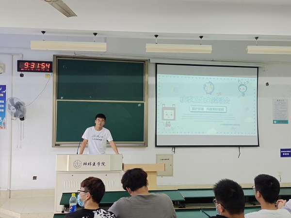 9月16日,卫生管理学院2020级信息管理与信息系统专业于2021年开展了秋季卫生主题班会。本次班会由生活委员魏海飞同学主持,主持人结合PPT就寝室卫生、个人卫生方面,向同学们详细、生动地介绍了生活中需要注意但容易被忽略的卫生问题。本次会议让大家充分了解了需要注意的卫生细节,增强了同学们的自我保健意识,对防病保健起到一定的积极作用。
