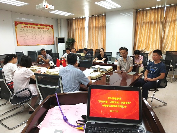为开展“不忘初心、牢记使命”警示教育,落实学校“以案示警、以案为戒、以案促改”警示教育方案,7月25日,卫生管理学院在会议室组织召开了“三个以案”警示教育学习研讨会,会议由卫生管理学院党总支书记、院长陈兴智主持,全体教师参加了会议研讨。