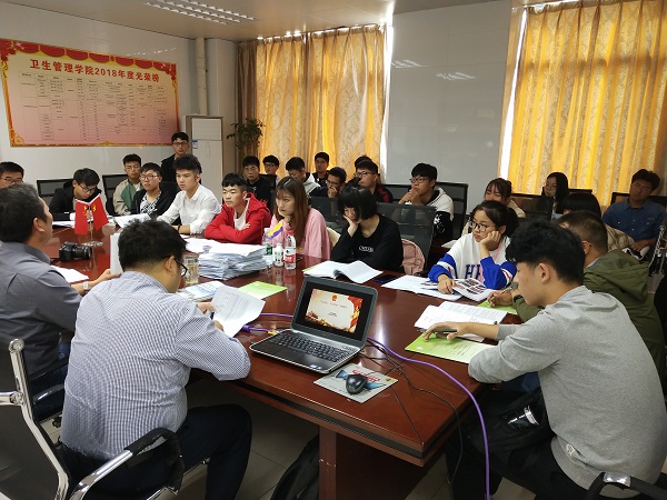 为认真学习贯彻学校党委关于开展“不忘初心、牢记使命”主题教育的有关要求,按照卫生管理学院党总支主题教育工作的计划安排,10月9日下午,在党员活动室,卫生管理学院党总支书记陈兴智结合新生入学教育和本科生导师制培养工作讲了一堂题为“关于十九大报告,你必须知道的‘关键词 ’”的精彩党课。