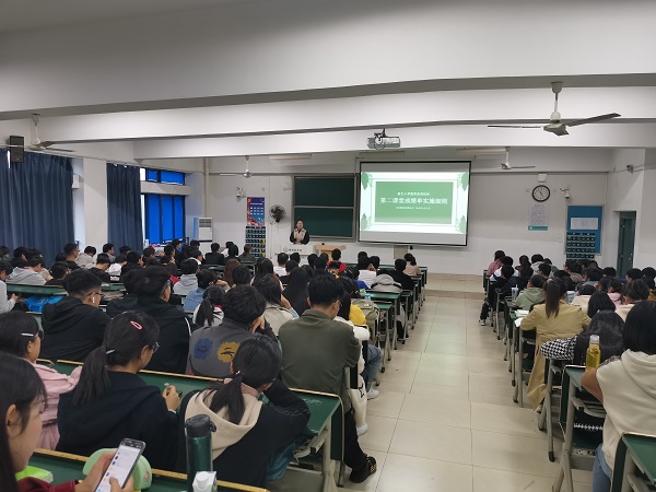 下午四点半,19级新生们有序地进入教室。首先由团干老师介绍了开展“第二课堂”的目的、意义和要求,重点讲析了开展“第二课堂”的基本要求、成绩认定程序和认定范围。其次,对新生们提出的问题做了一一解答并给予相关建议,让新生们充分了解了相关文件精神,鼓励同学们不仅要学习好专业知识,同时更要勇于实践,锻炼能力,提高自身素养,做一名新时代合格的在校大学生。整个讲座期间同学们认真听讲、积极配合,气氛热烈,此次讲座在热烈的掌声中结束。