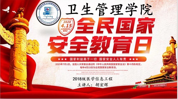 在4月15日“全民国家安全教育日”来临之际,卫生管理学院第二党支部结合《新时代爱国主义教育实施纲要》要求并根据学生工作实际,组织各年级各专业开展线上“全民国家安全教育”主题教育班会,此次班会旨在树立同学们对国家的大安全观,营造全员自觉维护国家安全的良好氛围,切实增强维护国家安全的能力。