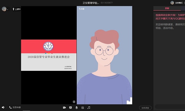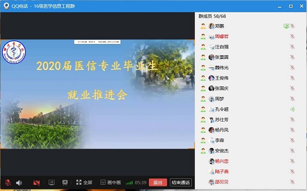 为深入贯彻落党和国家、省委省教育工委和校党委关于疫情防控期间做好毕业生就业工作的要求,卫生管理学院于4月30日-5月8日利用QQ、钉钉群在线上召开2020届毕业生就业工作推进会,重点探讨了如何进一步做好建档立卡毕业生的就业工作。学院老师和2020届全体毕业生参加此次推进会。
