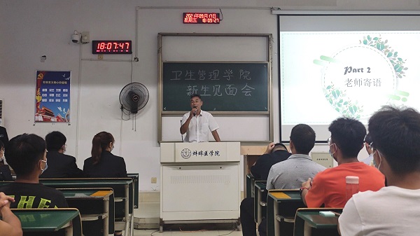 为了帮助新生更好融入新环境,尽快适应大学学习生活,9月17日晚,卫生管理学院在理论楼104教室举办了新生见面会。学院党政领导、年级辅导员和老生代表及2021级全体新生参加会议。