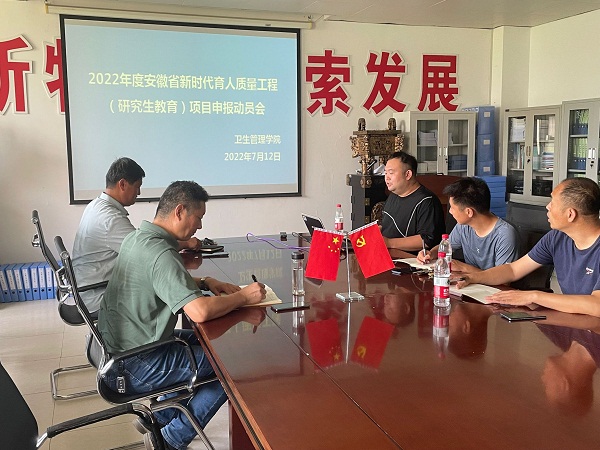 7月11日下午,卫生管理学院在学院会议室召开2022年安徽省新时代育人质量工程项目(研究生教育)申报动员会,会议由潘玮副院长主持,学院硕士研究生导师参加了会议。