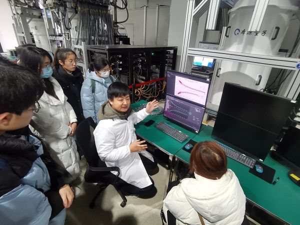 在本源量子计算实验室,孔伟成现场为同学们演示了量子计算机的指令输入、运算管理以及量子计算云平台使用等操作。在专家的指导下,同学们开展实际操作,深入了解量子计算机的工作原理,学习编写量子算法和运行量子计算机程序的基本过程。在量子计算科普展厅,师生一行系统了解了量子计算的发展历程、现实应用和未来发展趋势,切身感受到量子算力对医学发展和社会进步的积极促进作用。