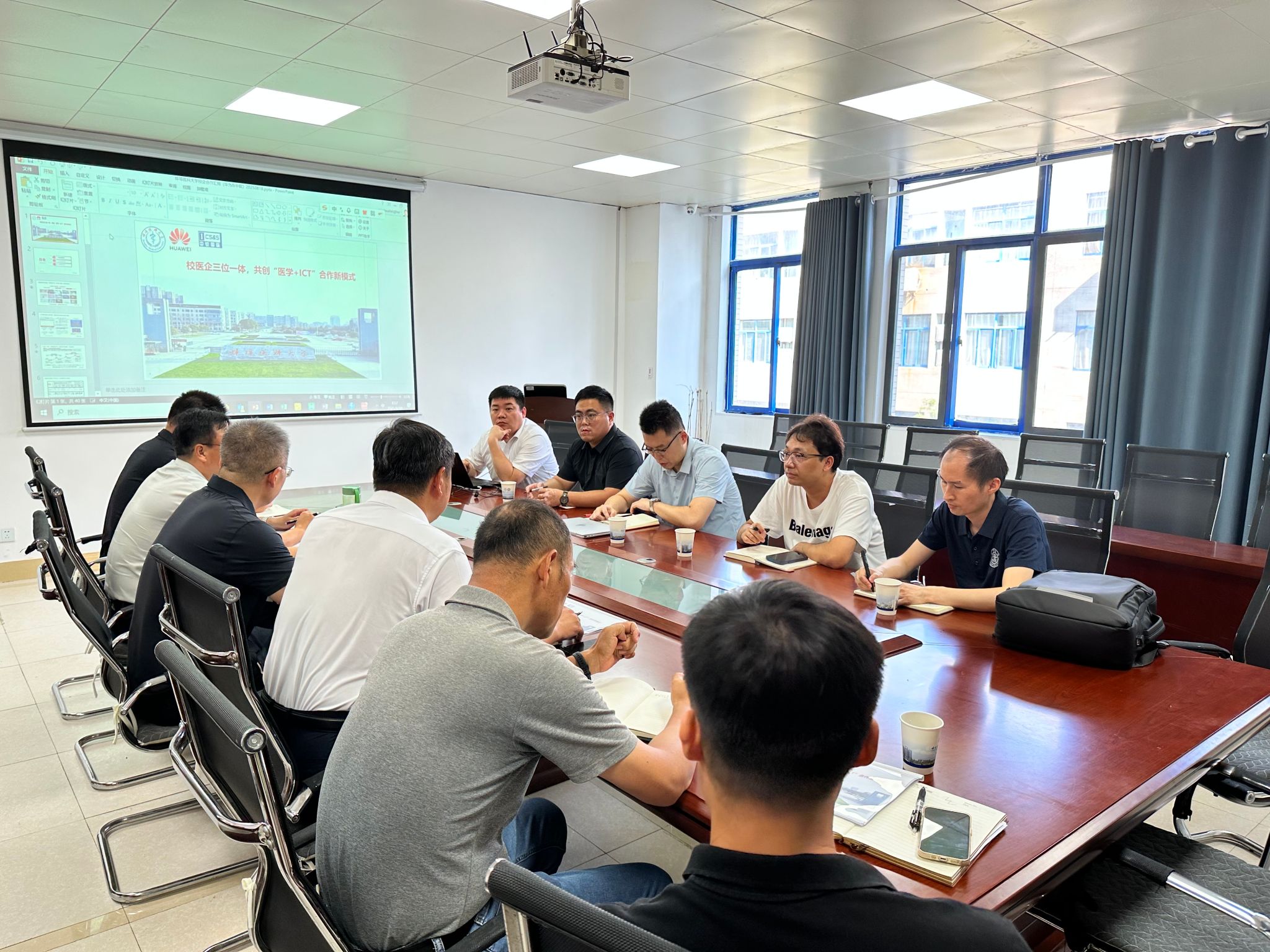 乔雪磊围绕产业与政策背景、医工融合建设方案、合作案例与规划等三个方面做了重点介绍。学院领导和教师代表就专业特色凝练、学院建设路径、联合创新实验室建设、产学合作项目联合申报、智慧课程开发、企业导师引入等话题与来访企业代表展开深入讨论,一致同意从具体切入点推动全面合作,以点带面共同推进合作成果的做实落地。双方还就实验室建设、产教融合项目申报和共同指导学生参加ICT大赛等具体事宜达成初步合作共识。