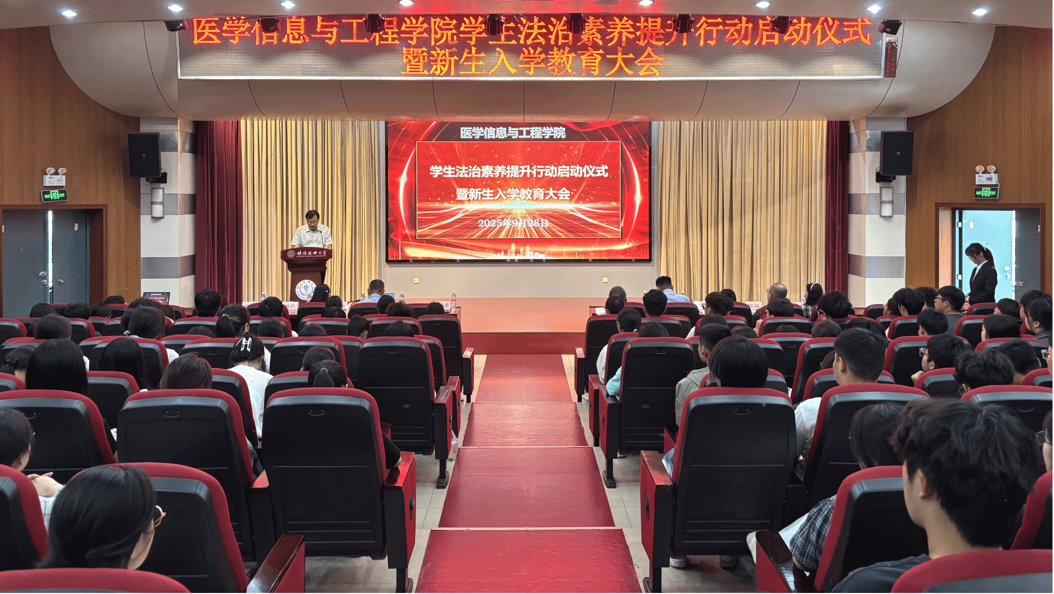 举办学生法治素养提升行动启动仪式暨新生入学教育大会。学院党委书记张浩轩及年级全体辅导员和2025级新生共同参会,会议由学院党委副书记贾先果主持。