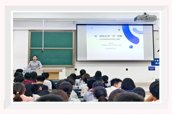 9月24日,学院邀请马克思主义学院杨莉艳老师为同学们做法治讲座。杨老师以《“医”路有法 护“卫”你我》为题,结合实际案例、生动形象地阐释了法律在日常生活中的重要性以及大学生如何运用法律武器保护自己的合法权益。讲座现场互动频繁、气氛热烈。